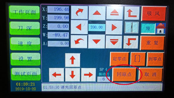 3.回原點(當設備沒恢復原位時需按回原點,設備自動回到原點)